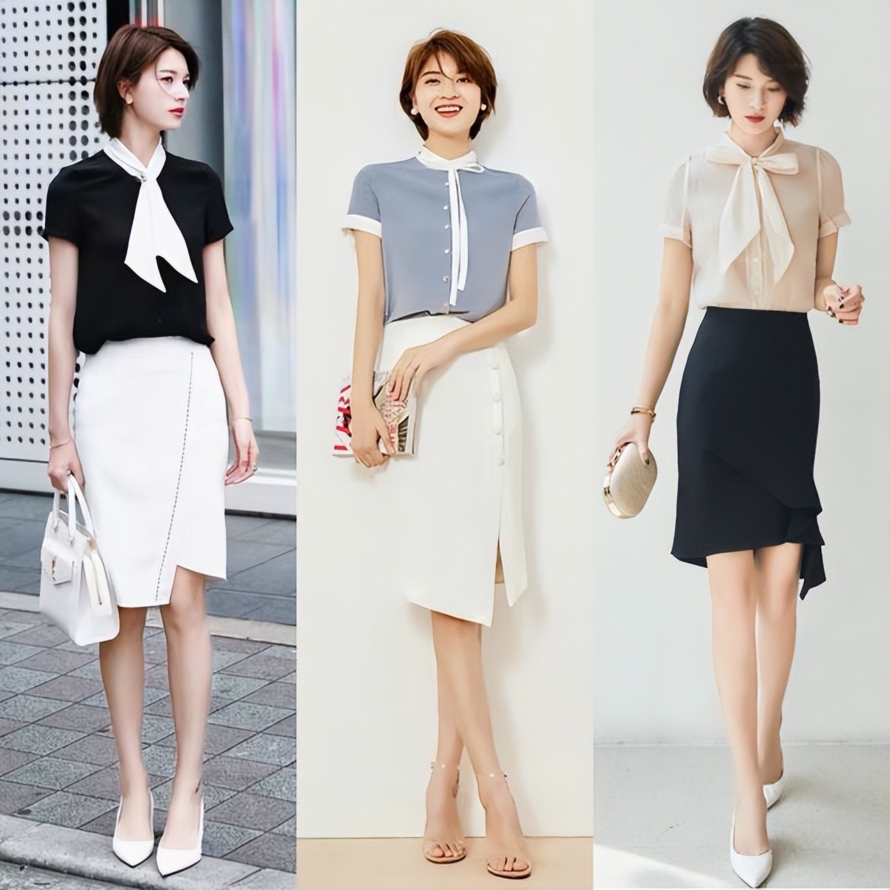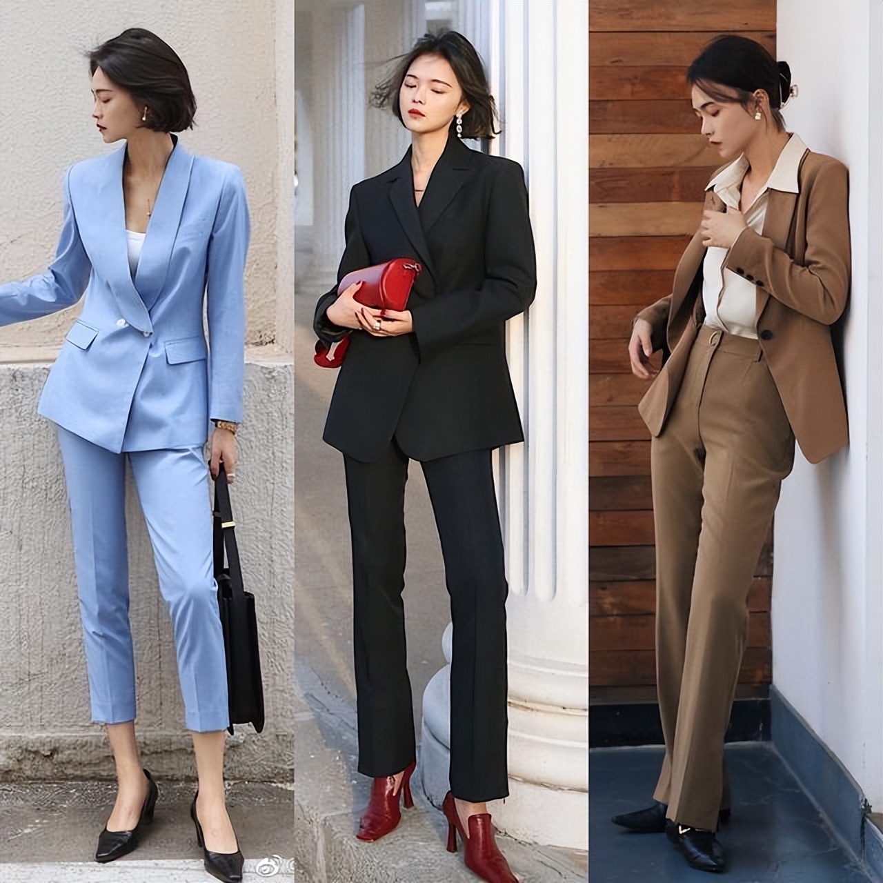 如果不想長期被沉悶的黑色西服所束縛,那麼就不妨嘗試一下其它的顏色,可以弱化這種壓抑的職場氣氛。色彩的選擇上,更推薦大家挑選淺色的基礎色系,例如:白色、米色、淺卡其色等,這些都是比較常見且百搭的顏色,而且也不怎麼挑膚色,即便是黑白皮也能很輕鬆的駕馭,淺色系在視覺上不會顯得很突兀,柔和又耐看,更容易打造知性優雅的職場造型。