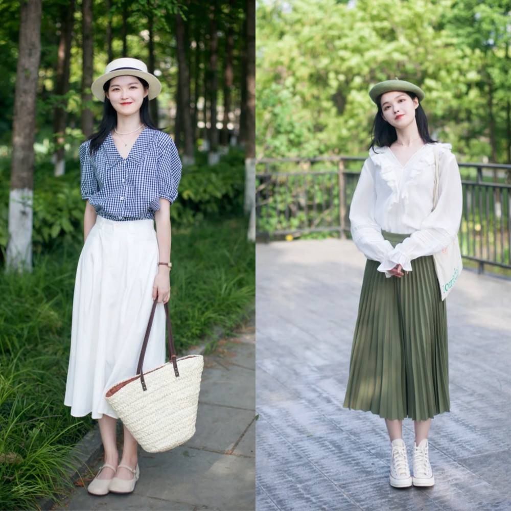 裙裝是必不可少的款式,與襯衫搭配在一起也能更好的穿出溫柔淑女的風格,為了避免顯得拖拉,一定要把襯衫的衣角塞入裙子裡,露出腰線,這樣才能讓造型更具美感。