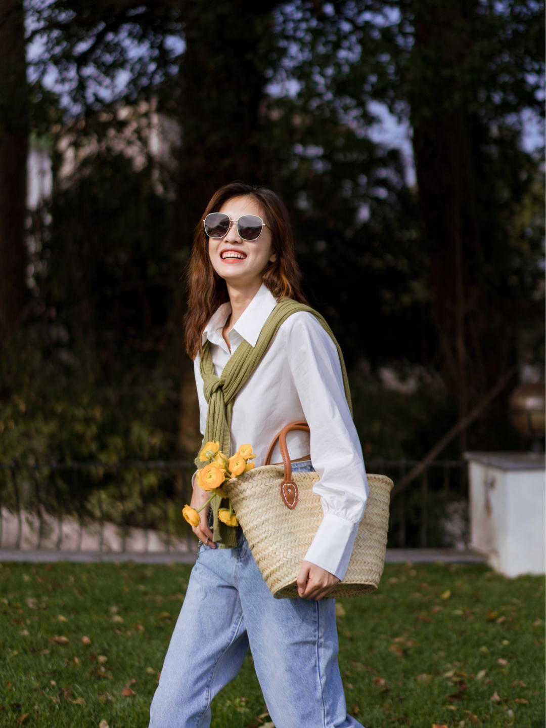 如果覺得單穿襯衫比較單薄平淡,那麼不妨披上一件披肩吧,可以用一件針織衫或是襯衫當做披肩,可以作為很好的裝飾品,讓造型顯得更加獨特個性。