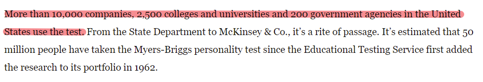 要知道,在美國,有超過 10000 家公司、2500 所高校、200 個政府機構在使用 MBTI 測試。
