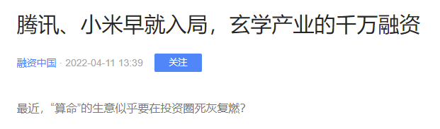 而且不止是 CPP ,根據 36 氪的報導,從 2014 年開始,有超過 40 家與 「 占卜、風水、命理 」 業務相關的企業都拿到過風險投資。