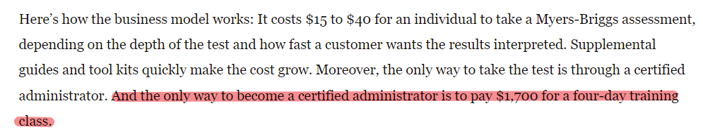 例如很多人不知道,在握有 MBTI 人格測試版權的 CPP 公司主頁,做一套正版 MBTI 測試要花 49.95 美元。