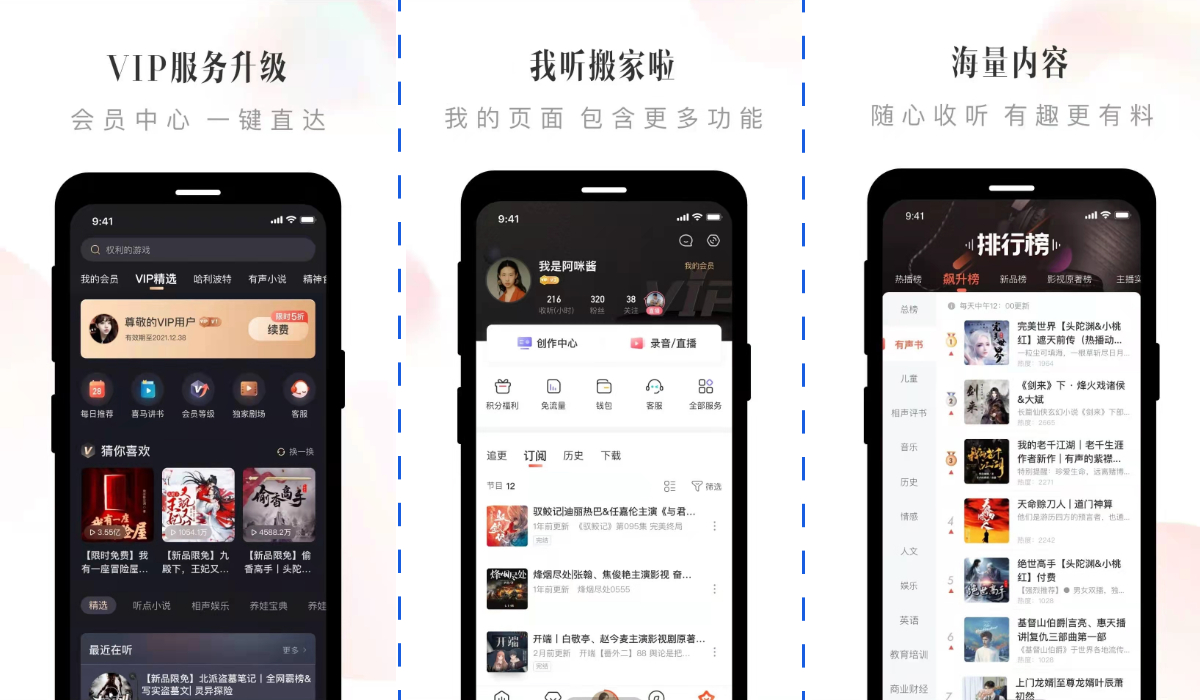 這是一款功能強大的聽書軟體,它覆蓋的領域有很多:如資訊、情感、娛樂、人文、科技、戲曲等等,想聽什麼就有什麼。平時做家務、通勤或者準備入睡時,就可以一邊聽它。現在軟體功能還優化了不少,新版的喜馬拉雅還可以看ppt,也出了個Line小程序,不占記憶體又方便。