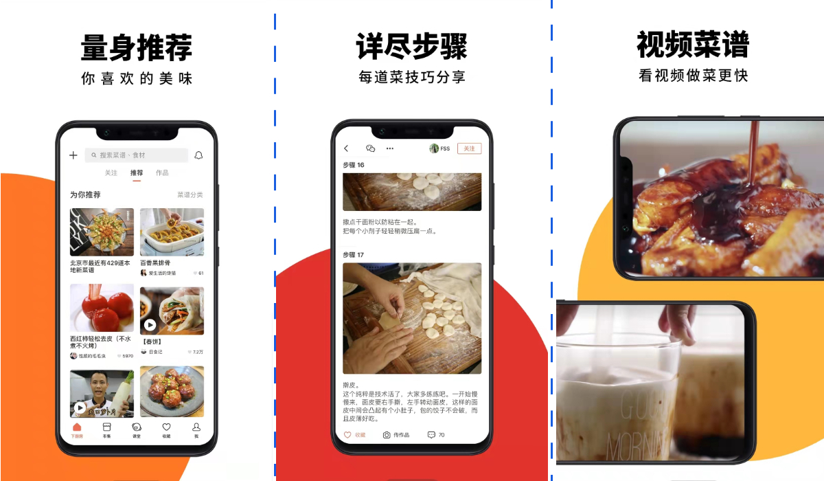 這是一款教你做菜的手機軟體。它能提供各種不同的菜式:家常菜,肉類,早餐,蔬菜,湯粥等等,它對不同的食材、不同的場景都能提供不同的做法,不光有文字解說,還有視訊教程,對於我這種不會做菜的小白,特別實用。
