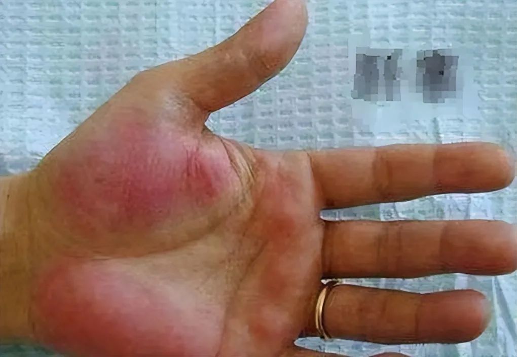 醫生特意給大家科普肝掌相關知識:有肝掌的人,通常手掌上會有「1紅1白」的表現。