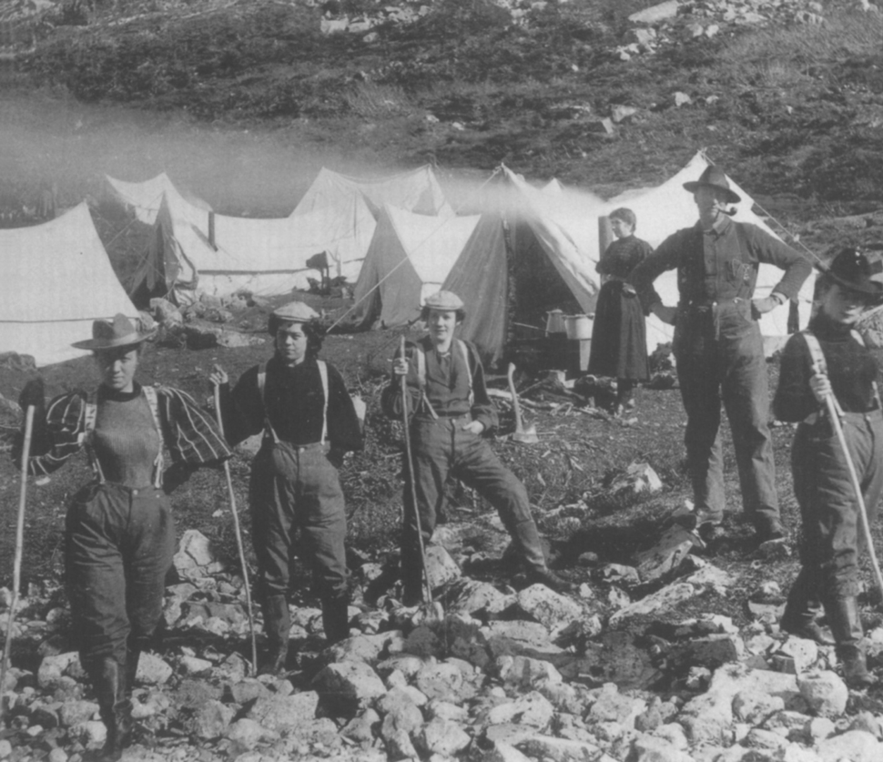 更加遠離「文明」的公共空間是阿拉斯加的荒野。19世紀末拍攝的照片顯示,在該地區徒步跋涉的女性身穿男式長褲,戴著男帽,同時搭配女性上衣和束身衣。這些女性可能是妓女,其外表與現代風格驚人地相似。相比之下,第一次世界大戰期間,當美國的工人階級女性從事繁重的工業勞作時,她們需要穿「特殊的‘女性化’褲裝制服」,或在布盧默服裝的基礎上做成的又長又松垮的燈籠褲。