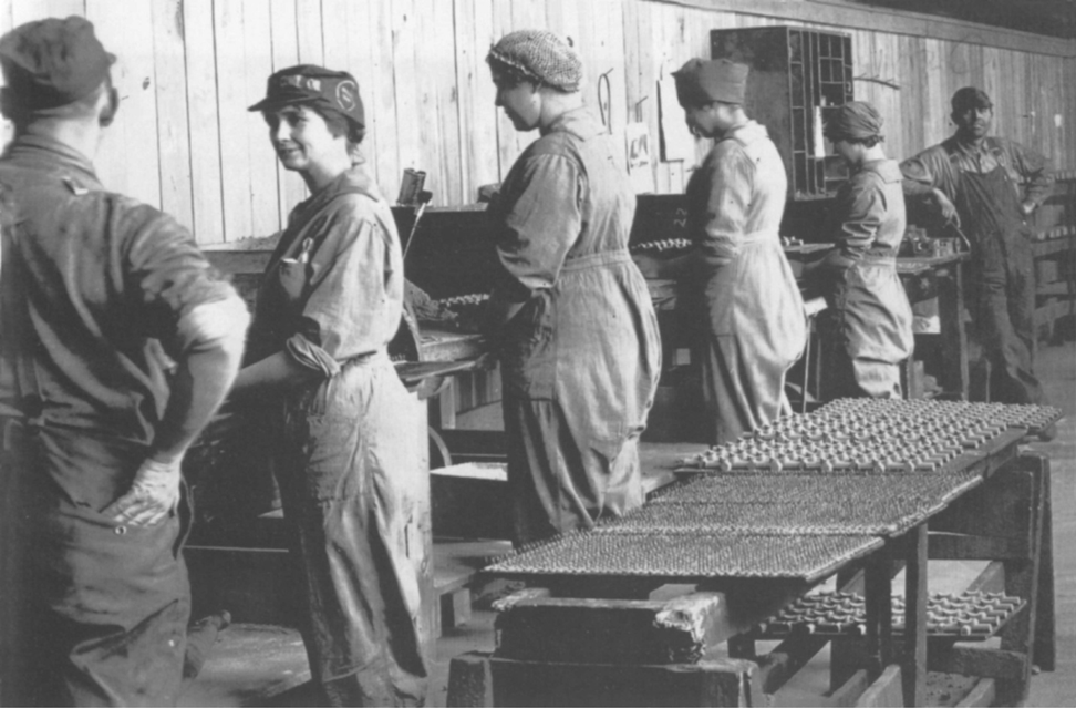 身著寬大工作服的軍工廠工人(1916年,美國)。照片由出版社提供。