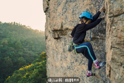 她叫王沐易,是寧波大學附屬學校三年級的學生。不久前,她成功挑戰廣西陽朔完成國內高難度野外攀巖線路「大陸攀」,成為大陸完成5.14A難度線路的最年輕選手,也是大陸第六位完成此難度野外攀巖線路的女性選手!