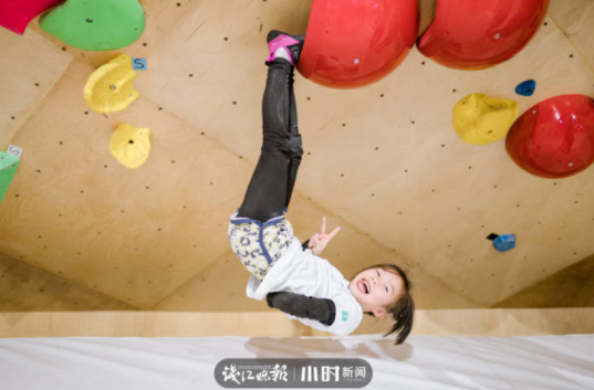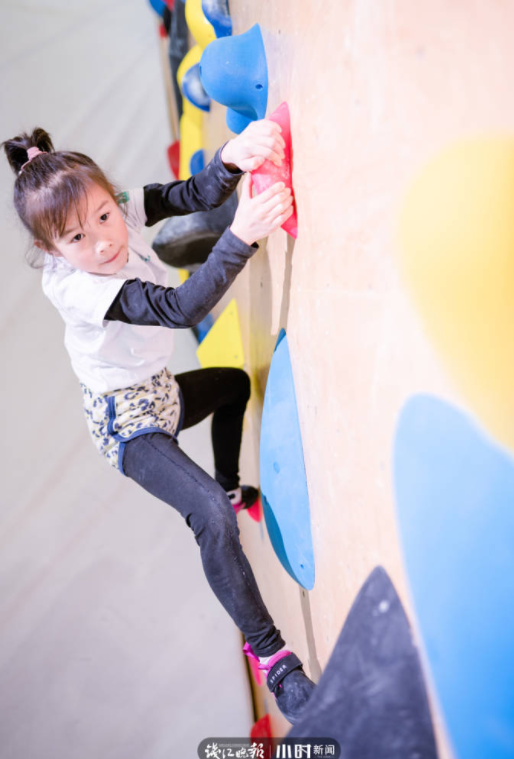 當錢江晚報·小時新聞記者聯絡上王沐易的時候,她正和同學們一起在教室裡大掃除。問及選擇攀巖的原因,王沐易毫不猶豫脫口而出:「喜歡!」