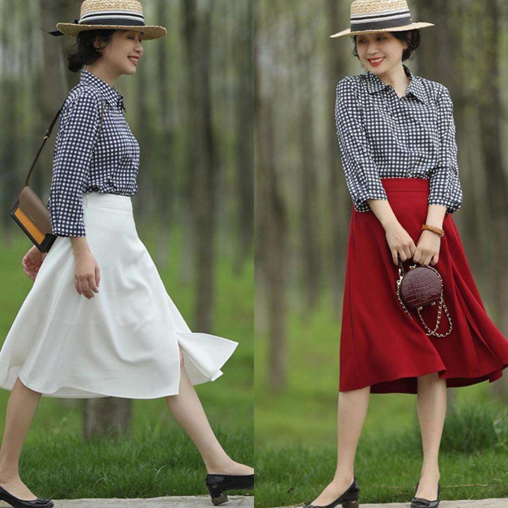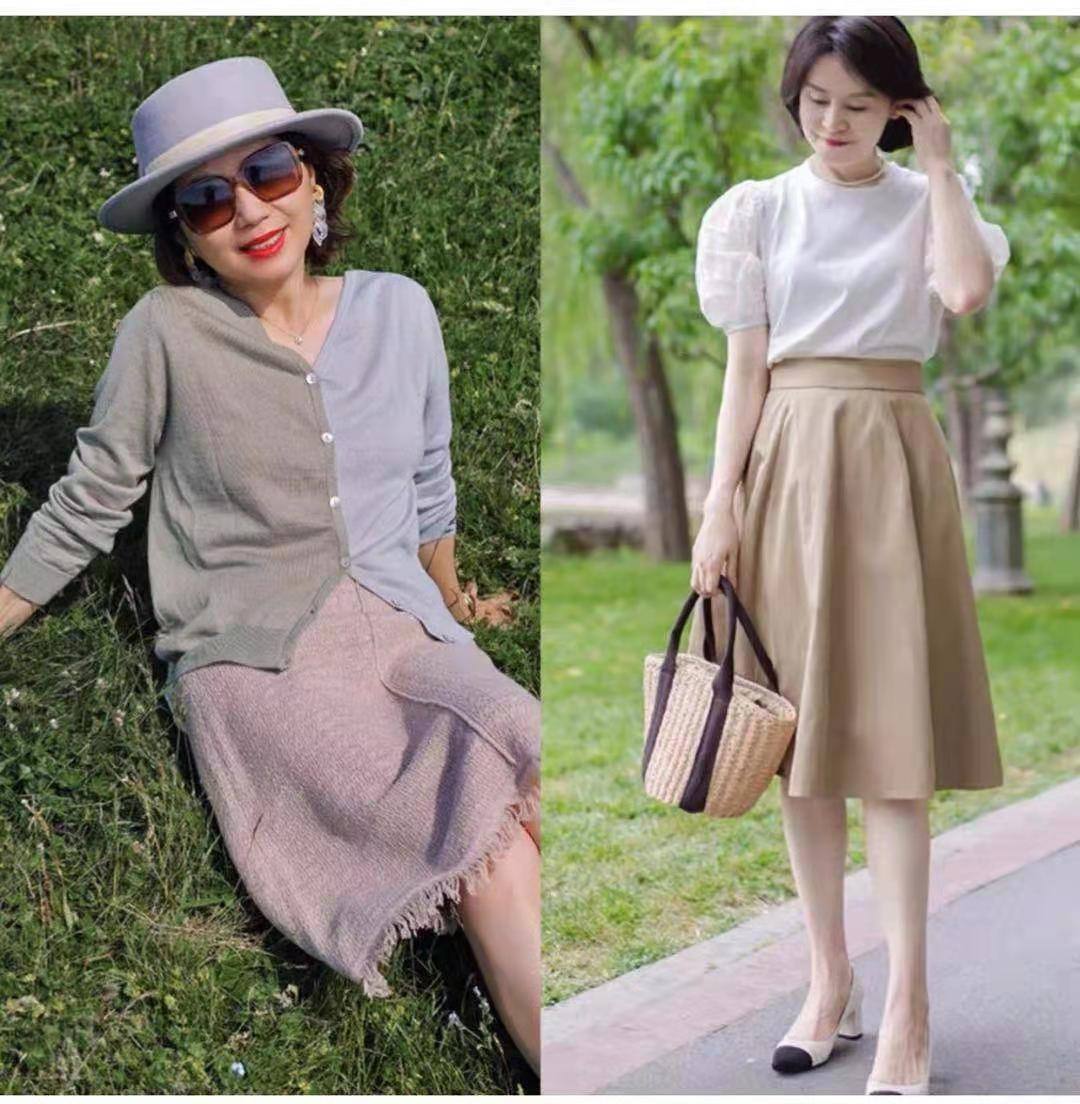 到了春夏季,裙子也是必不可少的時尚單品,對中年女性而言,可能早已沒有年輕時纖細筆直的腿型,因此在日常的穿搭中,以長裙為主是明智的選擇,長裙的優點也有很多,遮肉顯瘦不說,最主要的是能展現女性的優雅與嫵媚,非常符合中年女性的氣質,同時也要注意,長裙也不能過踝,這樣能起到一定的顯高作用。