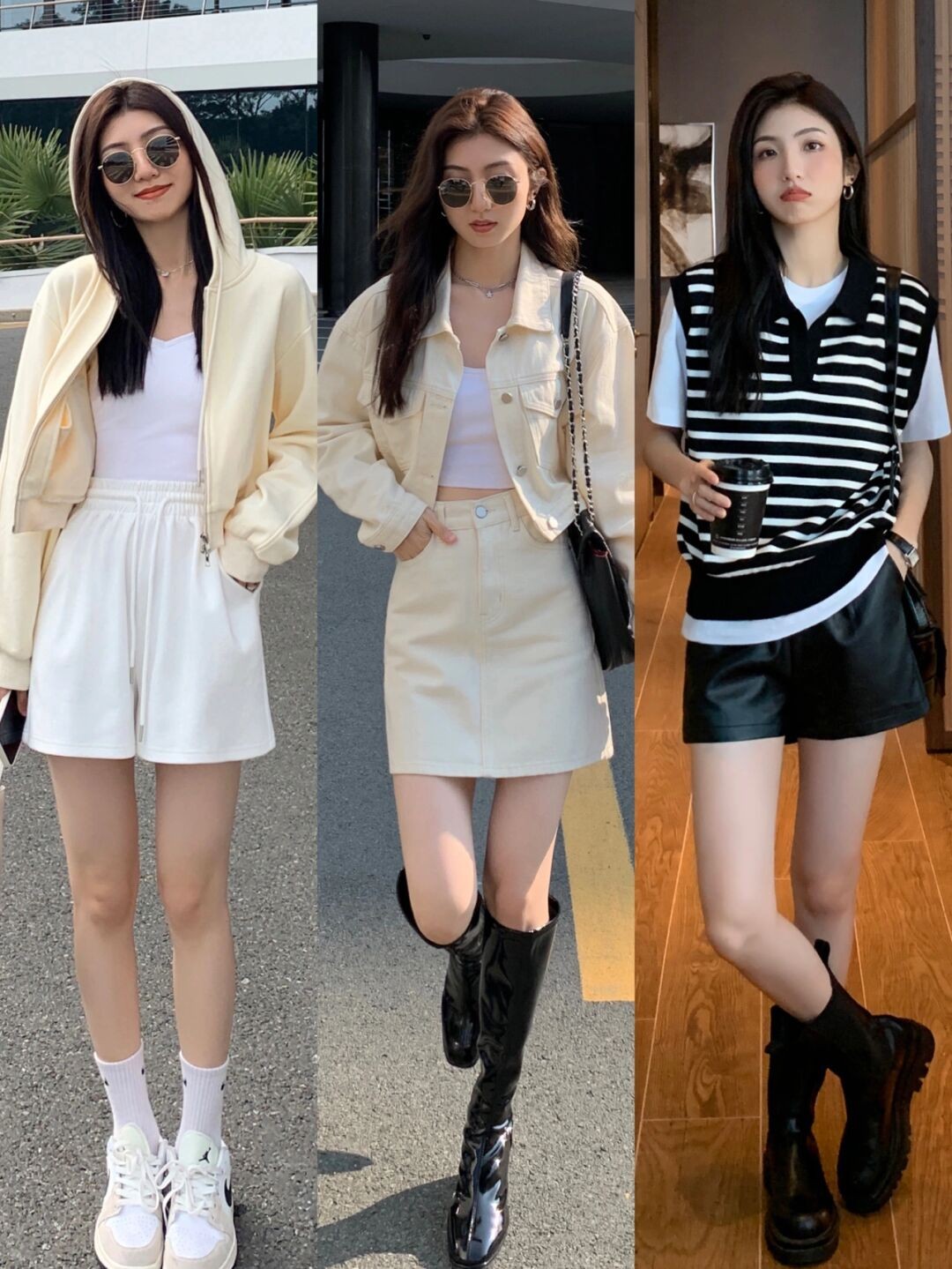 例如下面這種鵝黃色套裝看上去就很清爽,也可以選擇黑白色條紋衫的搭配,體現簡單隨性的氣質。
