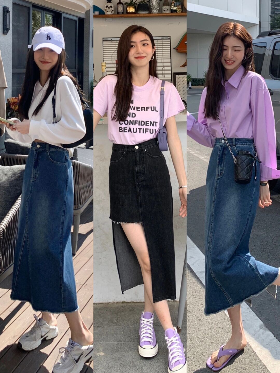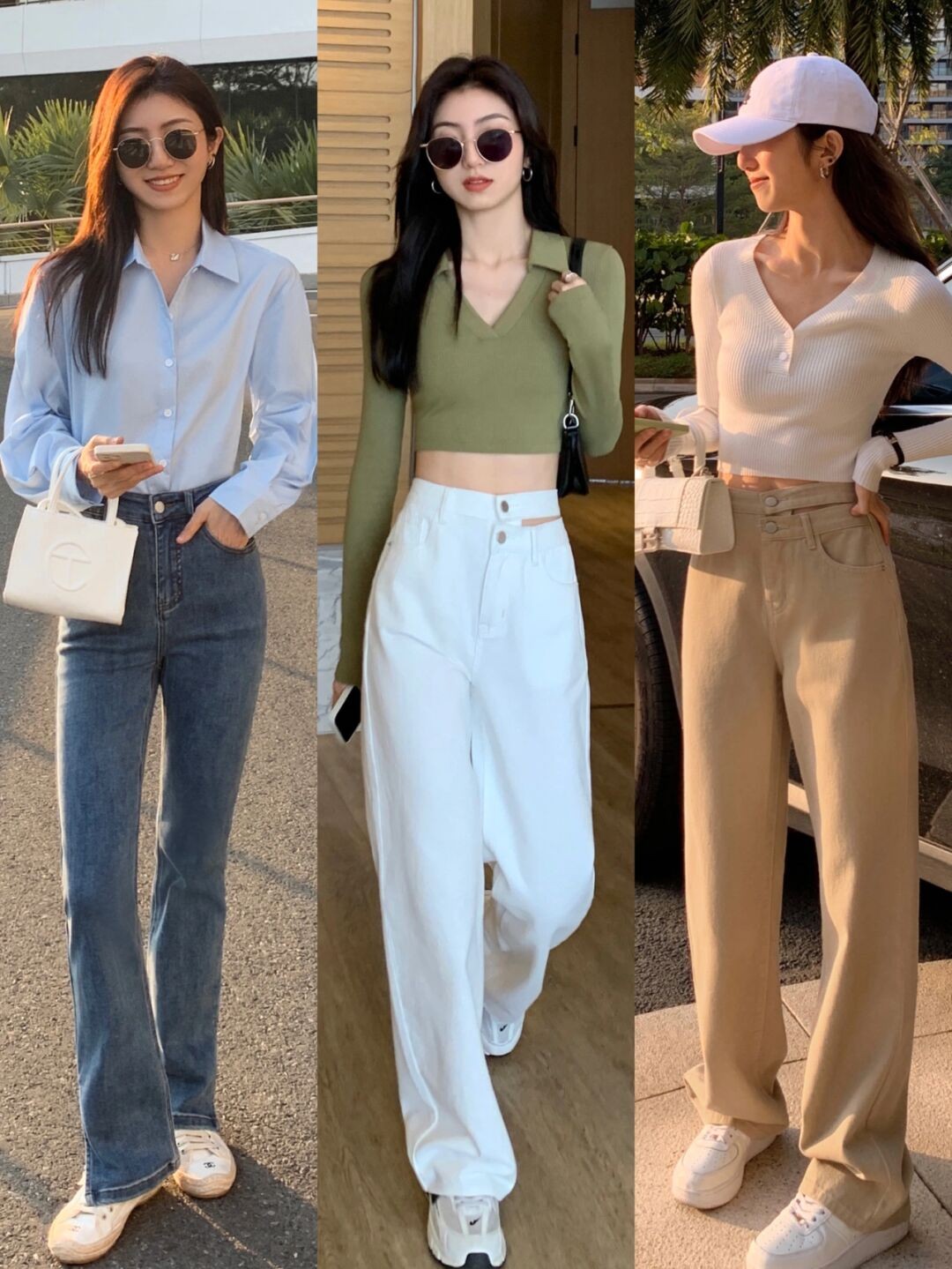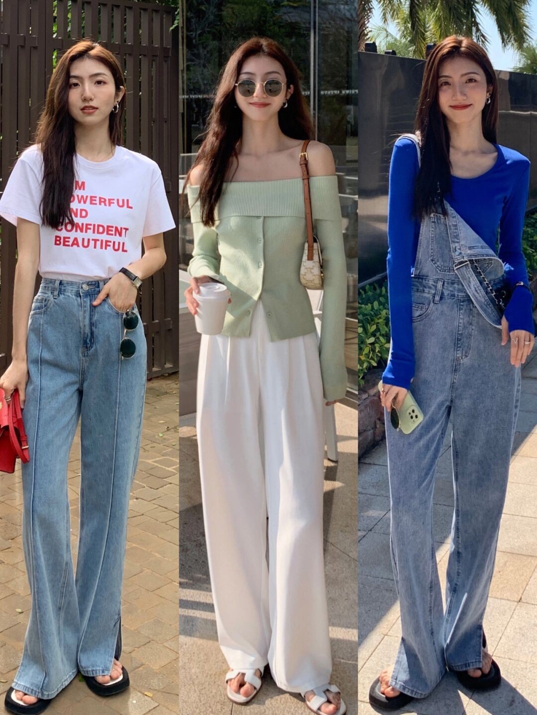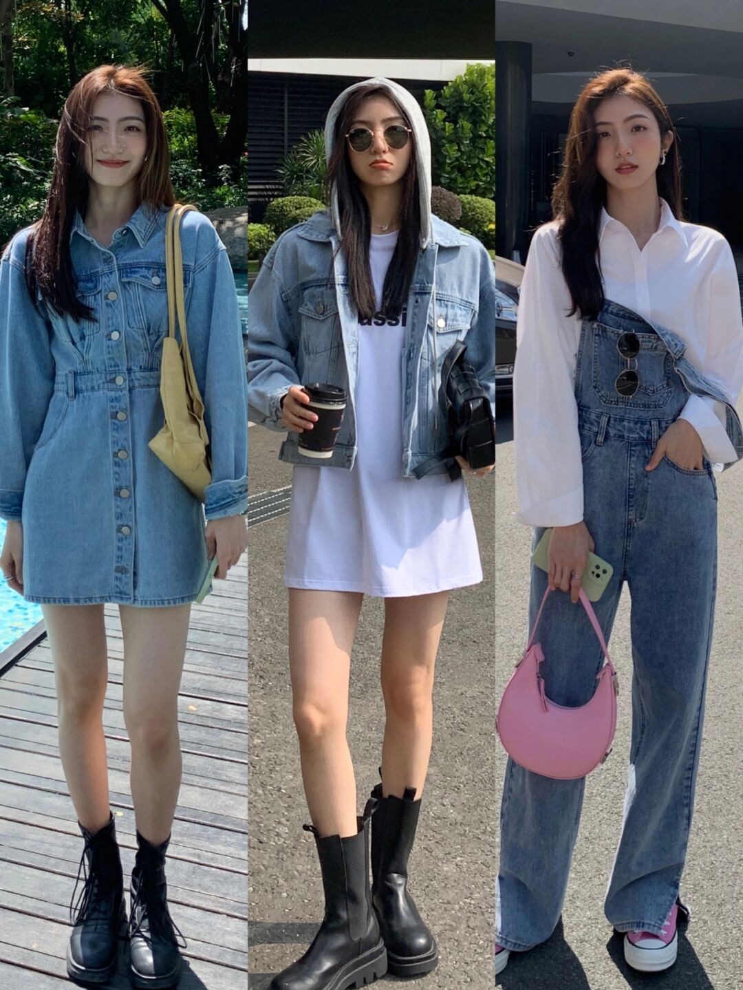 淺藍色牛仔褲,牛仔連衣裙或者是牛仔背帶褲都是很值得入手的單品,無論是風格還是色彩都緊跟了當下的時髦趨勢。而且搭配的時候也可以混搭其他流行色配飾,例如粉色包包,也很顯嫩。