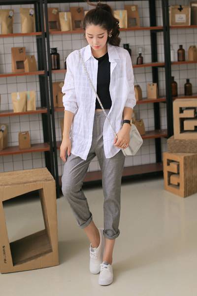 這就需要根據自身的身材特點來選擇,如果腰細腿細的女生,可以大膽的把這部分優勢展現出來,穿一件短款上衣搭配短褲/短裙,增加露膚面積,起到更好的吸睛作用。