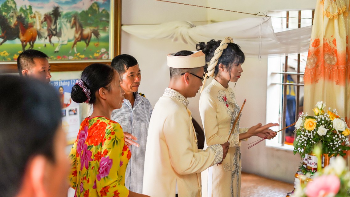 辦婚禮之前需要祭拜女方祖先。(如下圖