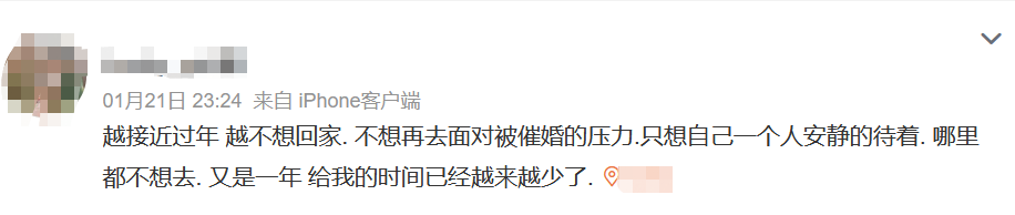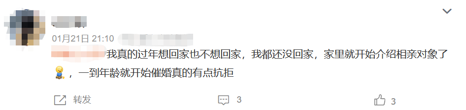 臨近春節,又到了一年一度的催婚「旺季」。在社交平臺上搜索相關詞條,有網友表示,春節回家最害怕的就是走親戚、吃年夜飯,因為要面對一個永恒話題:「怎麼還不結婚?」甚至還有網友稱,因為害怕被催婚,都不想回家過年了。為什麼子女越來越抗拒被催婚?