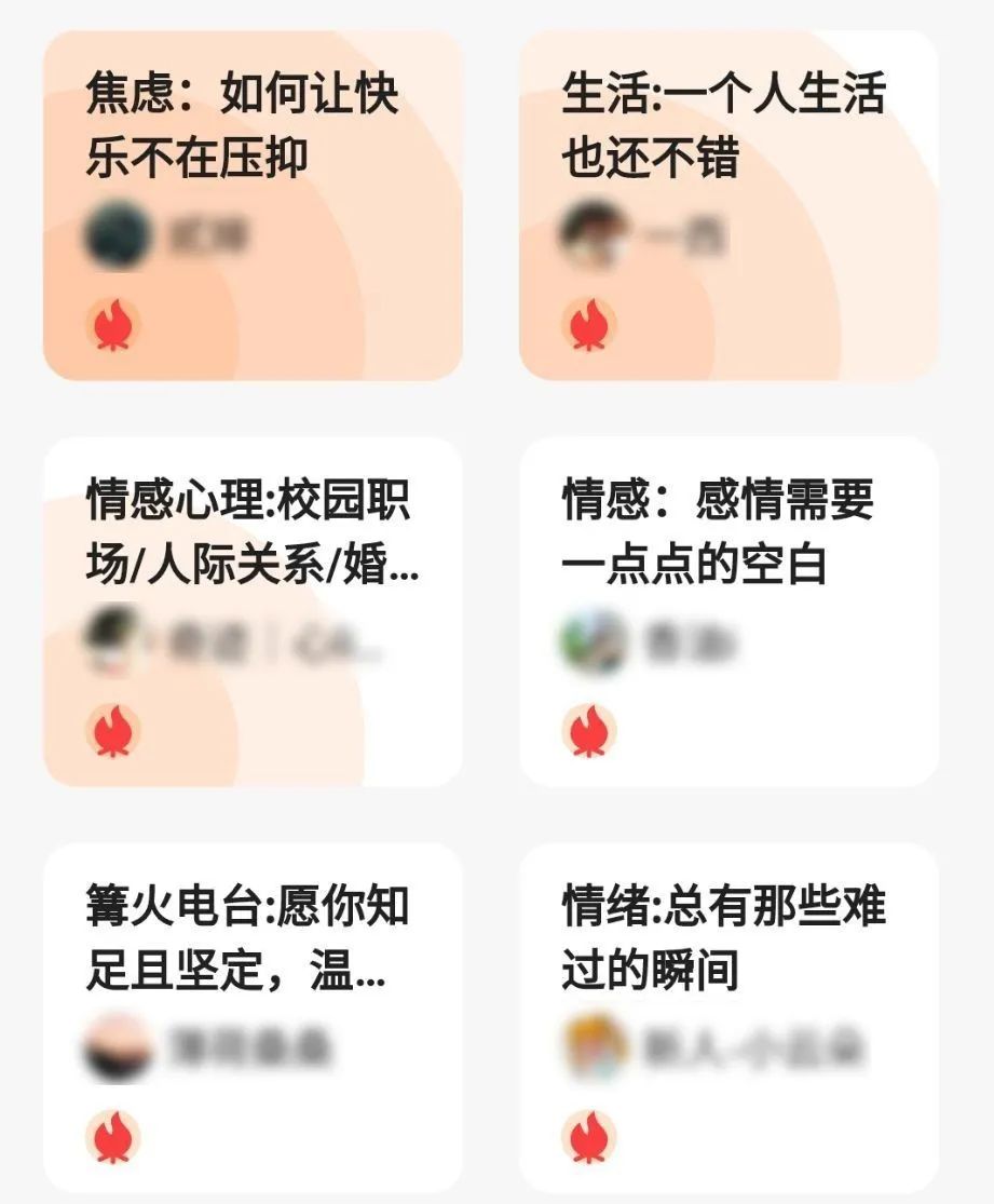 一個主持人來點燃一個溝火,然後一邊讓聽眾訴說自己的煩惱、一邊安慰,別的聽眾則充當一個傾聽者的角色。