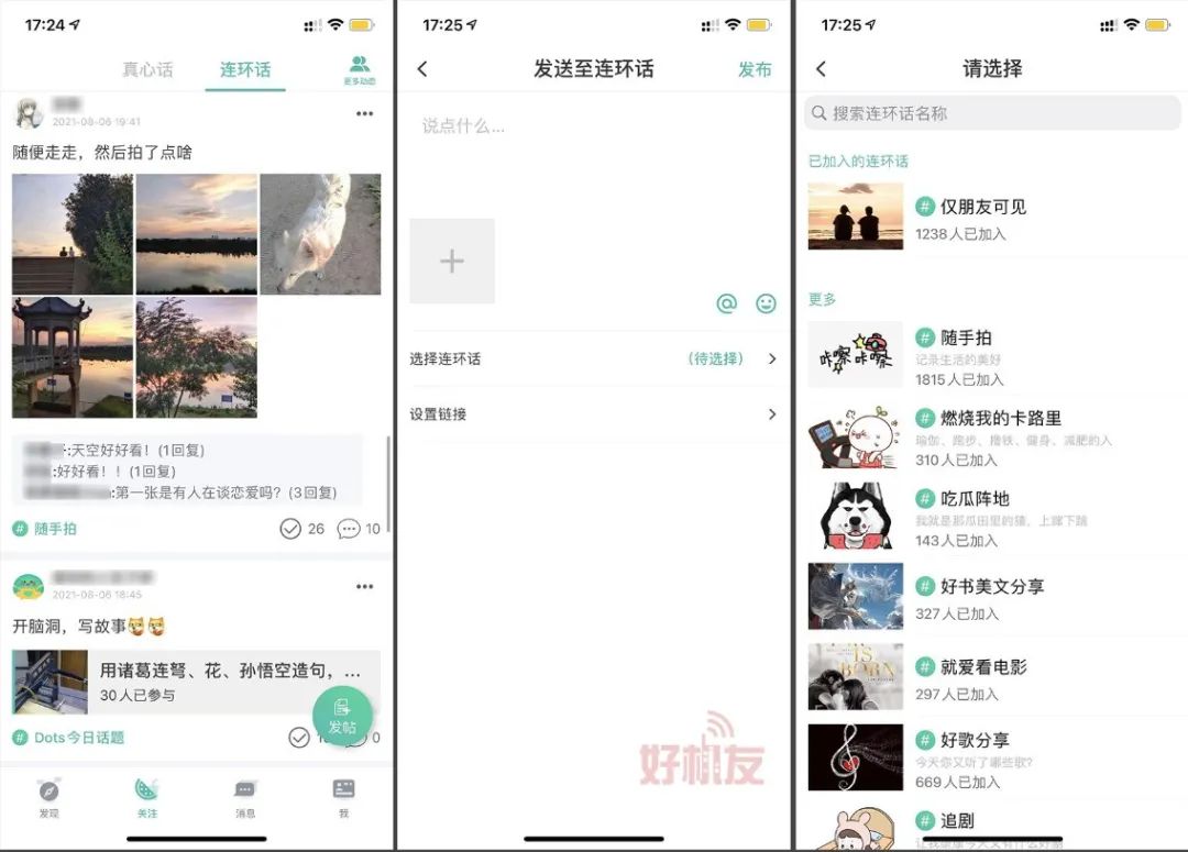 至於Dots另一板塊:連環話,就跟開放式朋友圈差不多了,只不過需要選一個主題才能發。