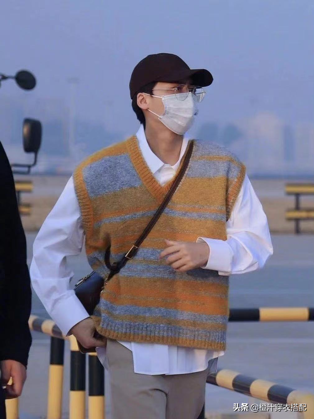 襯衫+條紋馬甲,秋冬掌握疊穿技巧十分重要