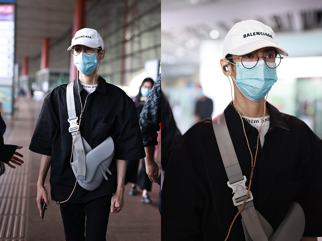 再加上灰色個性包包進行配合,整體利用黑白灰進行搭配,將基礎色的力量很好地釋放出來。