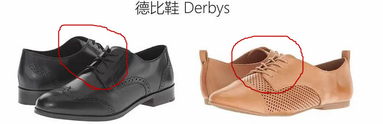 德比鞋,英文名是Derby。先不管其它,與牛津鞋相比,系帶處的襟片是開放的,與鞋幫分離,獨立而成。