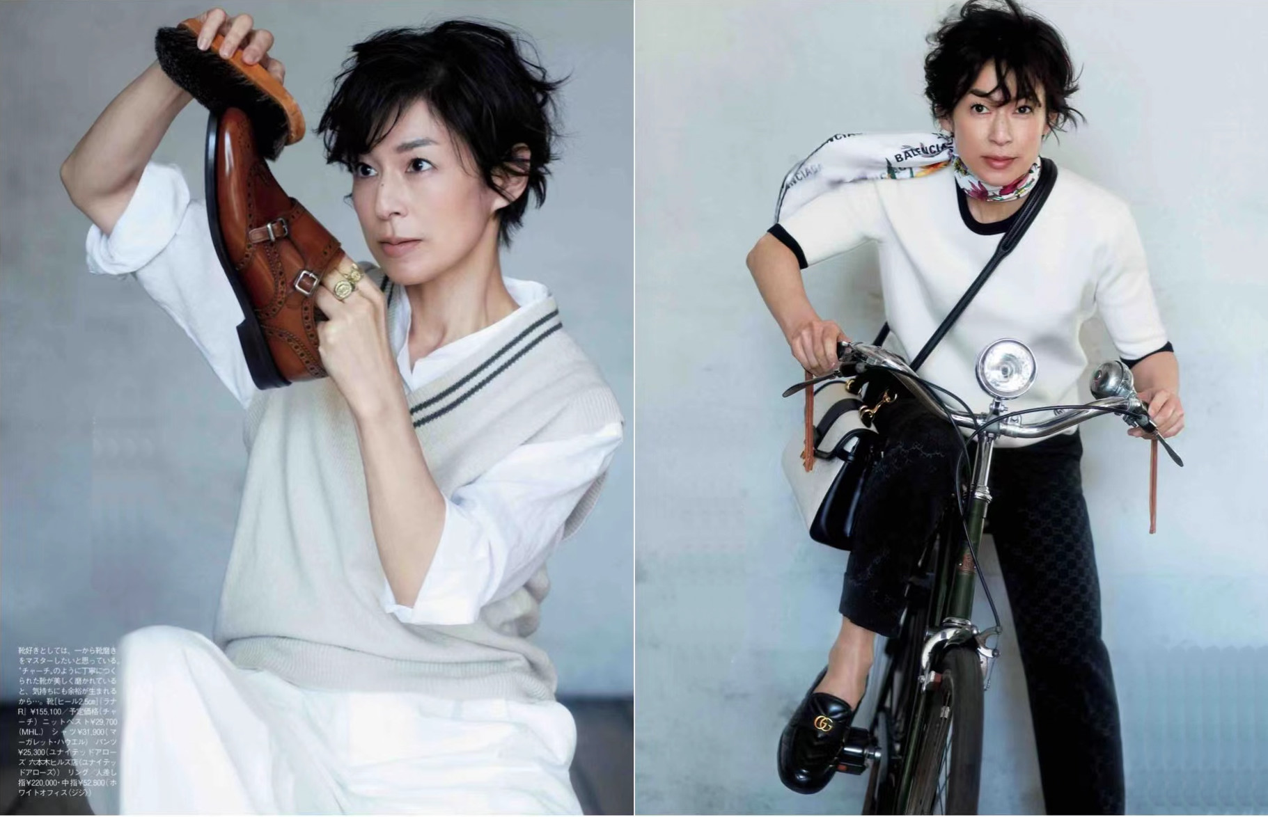 當然,對於鈴木保奈美來說,樂福鞋的休閒更加穿著無壓力。而從搭配手法來看,沒有限制,隨心所欲即可。