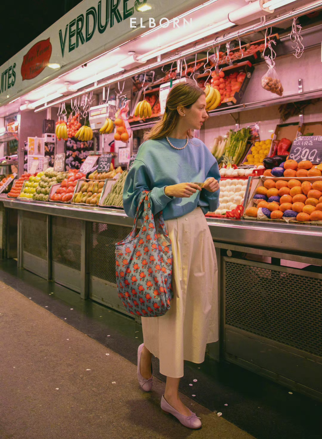 高級感搭配除了要選對單品的版型之外,注重各個單品搭配在一起顏色的協調效果也是格外重要的,如果整體搭配屬於清爽風格的,那盡量上下身的單品都保持淺色系,像這款淺藍色套頭衛衣配上白色半身裙的造型,清爽大方,女生搭配的印花手提袋以及紫色平底鞋都很好的為造型帶來了少女氣息。