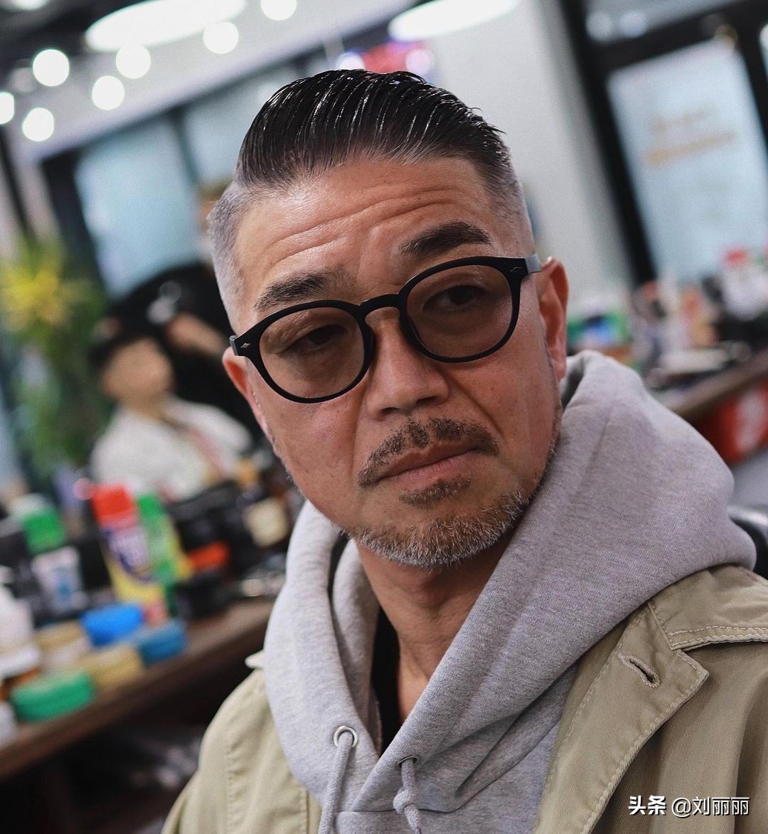 這位中年大哥的二八分造型,選擇用油頭膏打理出這種油亮的效果,紳士有型不落伍,也是很有型男風采。