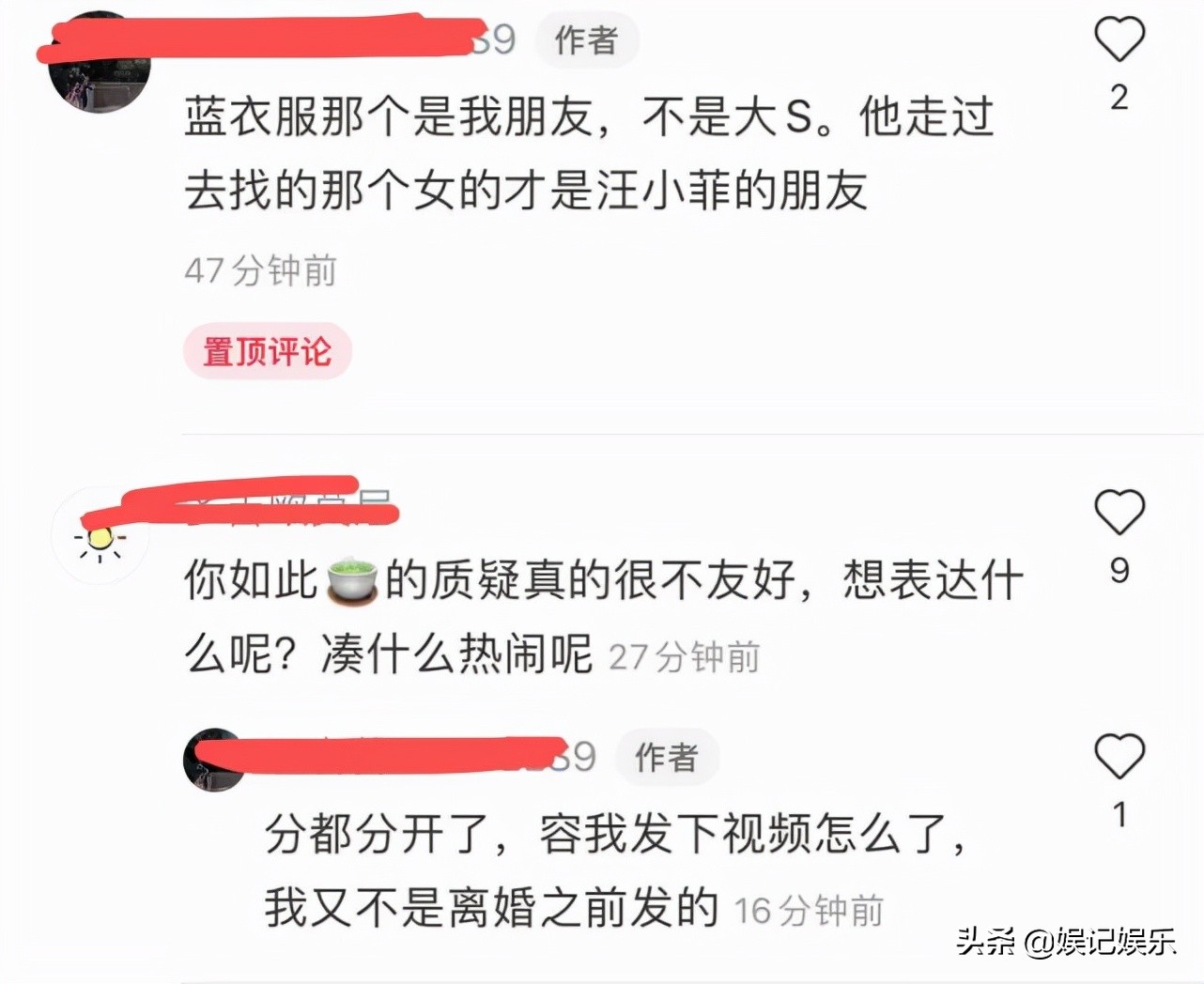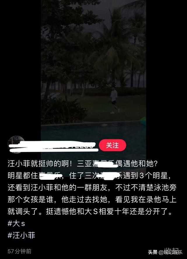 為了不讓大家誤會,曬這段視訊的博主解釋穿藍衣服的女生是她的朋友,不是大S,汪小菲走到泳池邊去找的那個女孩才是汪小菲的朋友,也就是跟汪小菲一起去三亞玩的女孩。