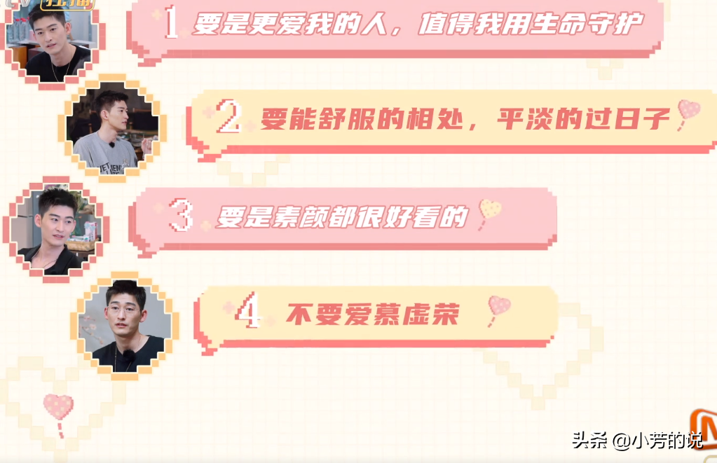 而翰說的如果能感受到對方的喜歡自己一定會用生命保護,相信翰哥會做到也有能力做到的,而如果要說具體的擇偶標準,翰哥給出這麼4點,1是更愛自己的,2是相處起來舒服的,不得不說這點很難,要節奏一直三觀一致,3是素顏就很好看的,很多人都卡在了這一關吧?4是不要安慕虛榮的,說實話,這一點卡掉的人更多