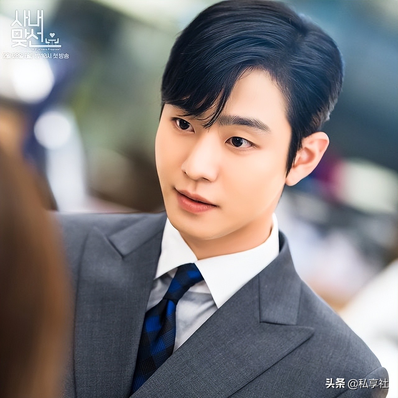 除了韓劇《社內相親》薑社長之外,怎麼少了秘書室長車成勛呢!在劇中飾演車成勛的金旻奎,與社長的逗號瀏海油頭稍微不同的是沒有往後梳成油頭,而是將瀏海分為二八分、稍微抓成C字型之後,其餘的頭髮梳成順毛,讓整體造型不會太過成熟,反而給人一種慵懶率性的時尚穩重感,也是很百搭的髮型之一!