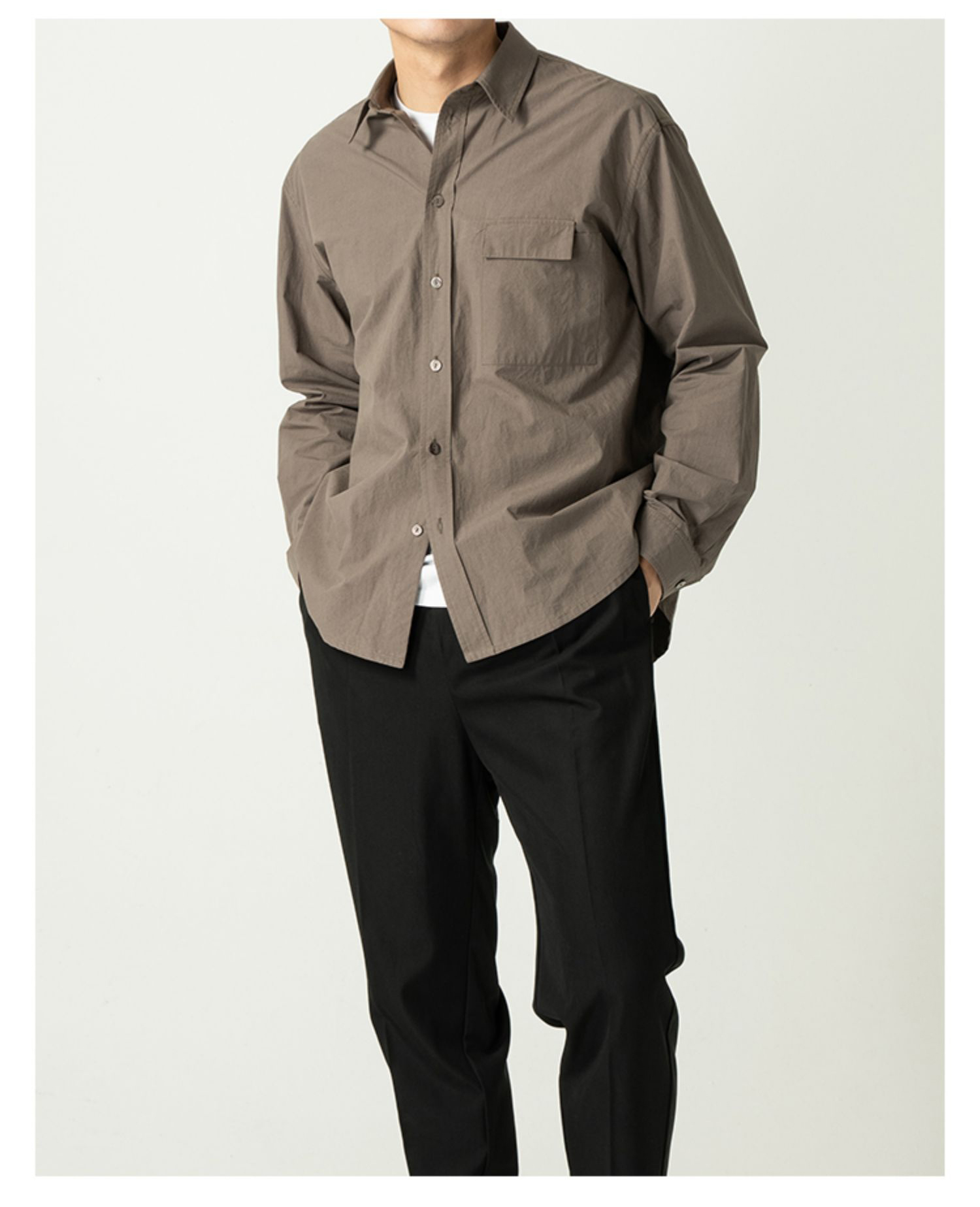 在日常穿搭時候,總被自己不夠完美的身材打擊了自信心;今天你們可以把自信找回來了!這套不挑人的襯衫穿搭,讓你盡顯高級熟男感!此搭配,上身選擇一款霧棕色襯衫,簡約又不失高級感;適中的版型,單穿或者作為內搭都適合;內搭疊穿一款白色T恤,舒適且百搭;下身選擇一款黑色工裝褲,側邊的大口,起到很好的裝飾作用;鞋子選擇一款百搭運動鞋;整套穿搭不挑人,高級熟男感等你表達!