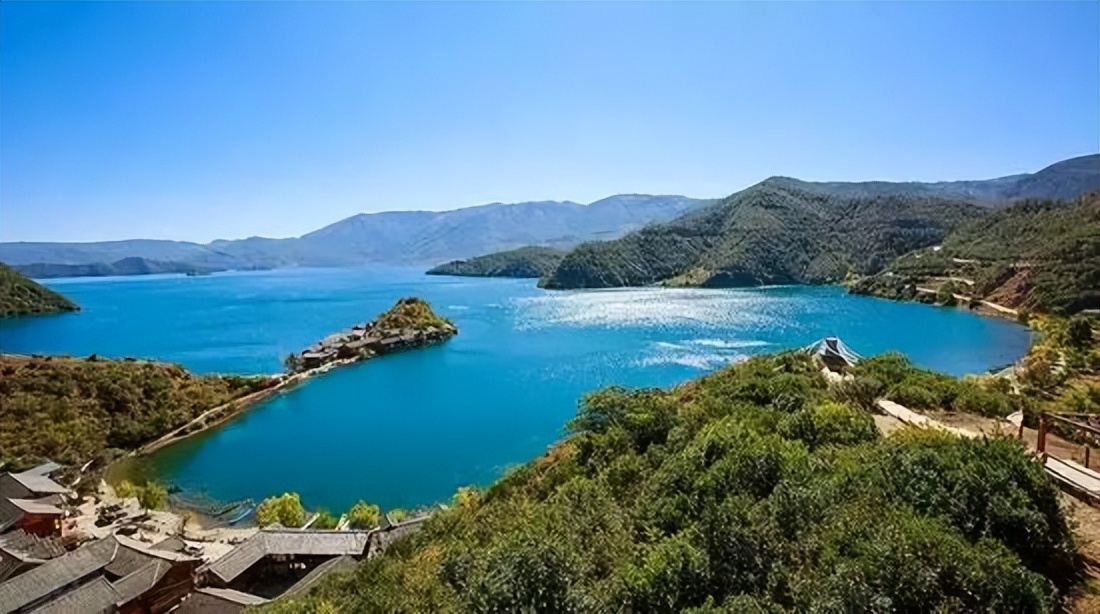 一脈青秀的山,橫亙天際,美如畫屏。一汪碧藍的湖,蜿蜒回環,清如明鏡。