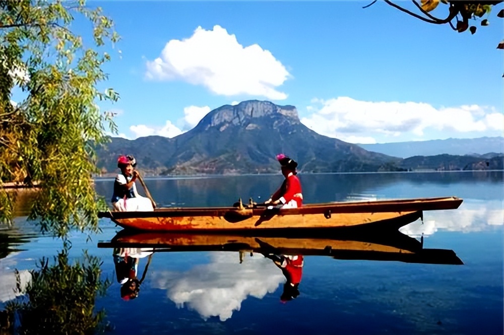 在瀘沽湖,常常會看見豬槽船蕩在湖面,它們因其狀如一隻長形豬槽而得名,是摩梭人唯一的水上交通工具。