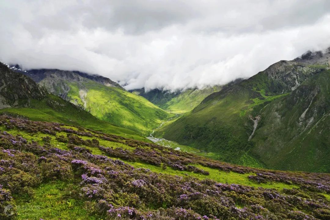 沿黑水河順流而上,兩岸青山碧綠,空氣清新,經過古藏寨,繼續前行,參天的古樹鬱鬱蔥蔥,高山峽谷風情盡收眼底,再往前走,一片寬闊的草甸出現在眼前,隻見白的、黃的、粉紅的各色鮮花布滿整個草甸,姹紫嫣紅,美不勝收。