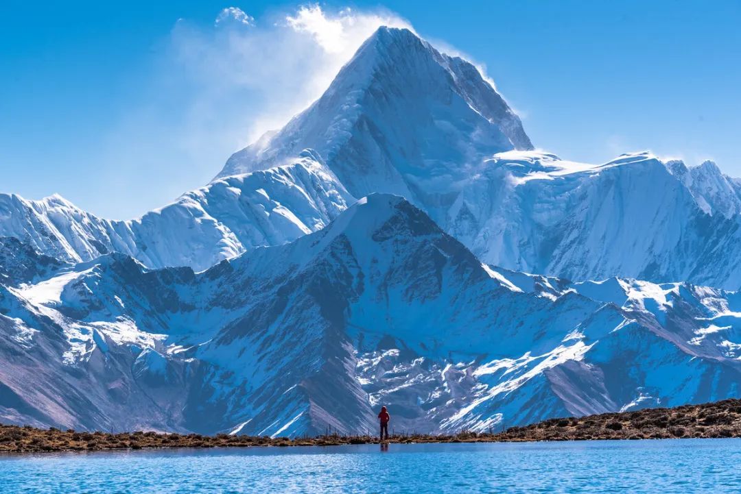 沒有葫蘆海的廣闊,也沒有九寨溝的艷麗,它只是小小的一汪海子,卻在貢嘎群山下得到升華。天氣極好時可以拍攝貢嘎群山的倒影,這個角度顯得它更加霸氣。和子梅埡口、牛背山完全不一樣,盡顯王者風范。