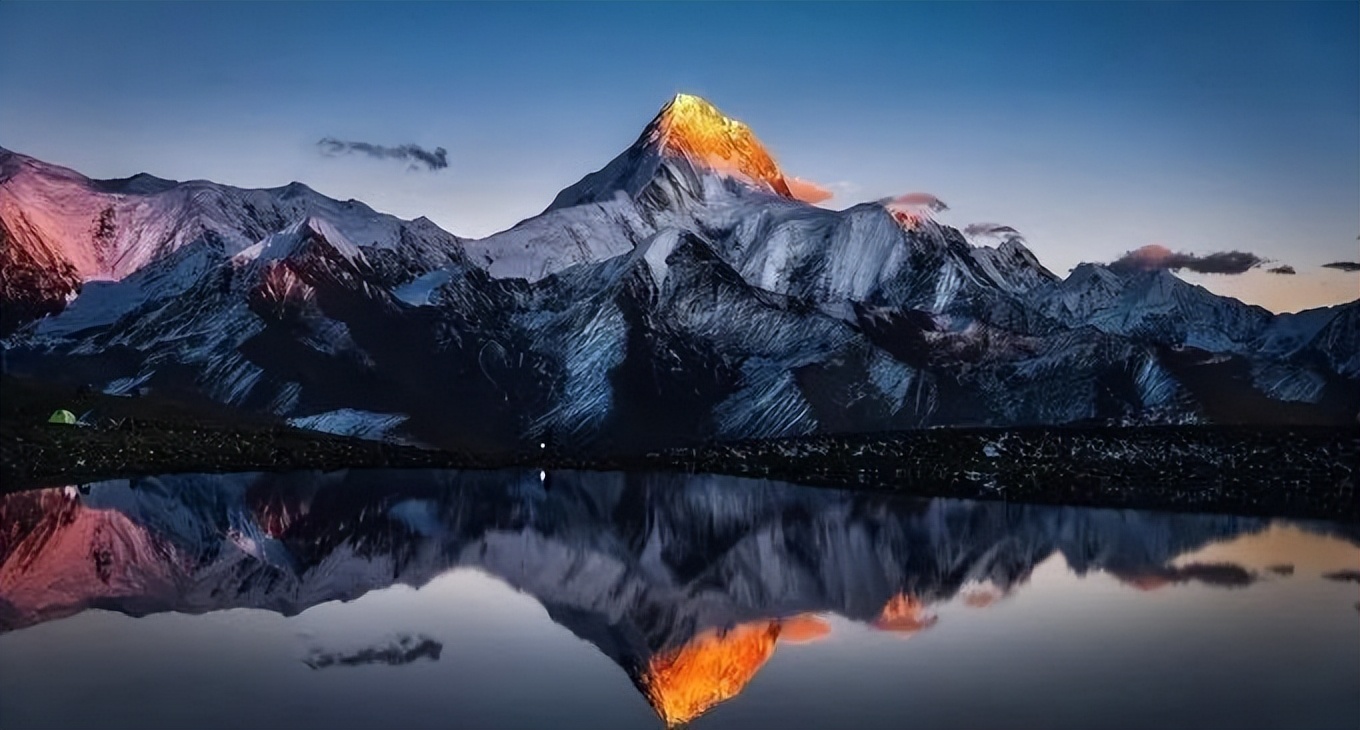 當你走到冷嘎措的對面,正對著貢嘎主峰,又是不一樣的感覺,那時候才能明白「貢嘎之眼」名字的含義。主峰倒映在海子上,如同清澈的眼眸。越往高處爬,瞳孔越放越大,感覺就像是在凝視著自己一樣。如果你想看一場難忘的日出日落,冷嘎措絕對不會讓你失望。