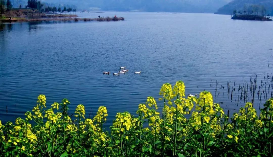 邛海一向以恬靜著稱,景色四季各異,春日天光水影,上下一碧,一片浩翰波光閃爍在蒼山碧野之中,「舟行碧波上,人在畫中遊」,岸邊柳眉桃腮,燕語呢喃。