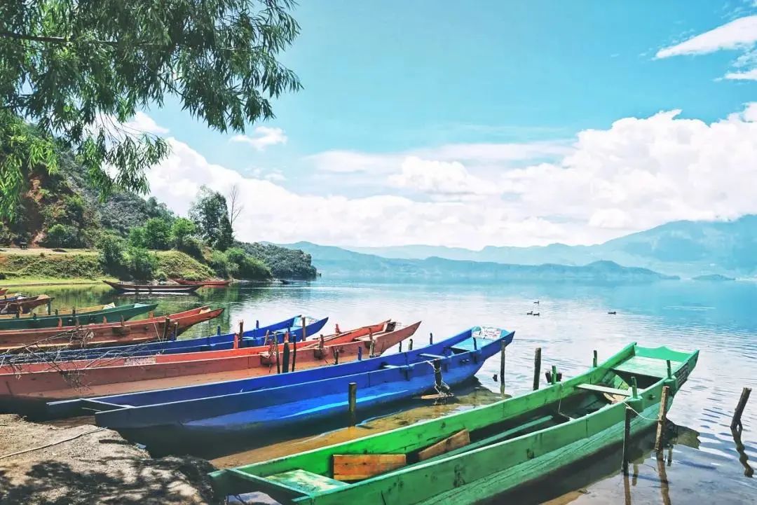 乘坐豬槽船,靜靜飄蕩在湖面上,或是深入湖中,發現未知的美景。在這裡,青山環繞著湛藍的湖水,一方山水似乎隻歸你所有。瀘沽湖是世界上唯一的 「女兒國」,有著最神秘、最古老的摩梭母系文化。這裡的女孩是摩梭人最高的「王」,她們質樸而明媚,浪漫而多情,堅強而大氣。