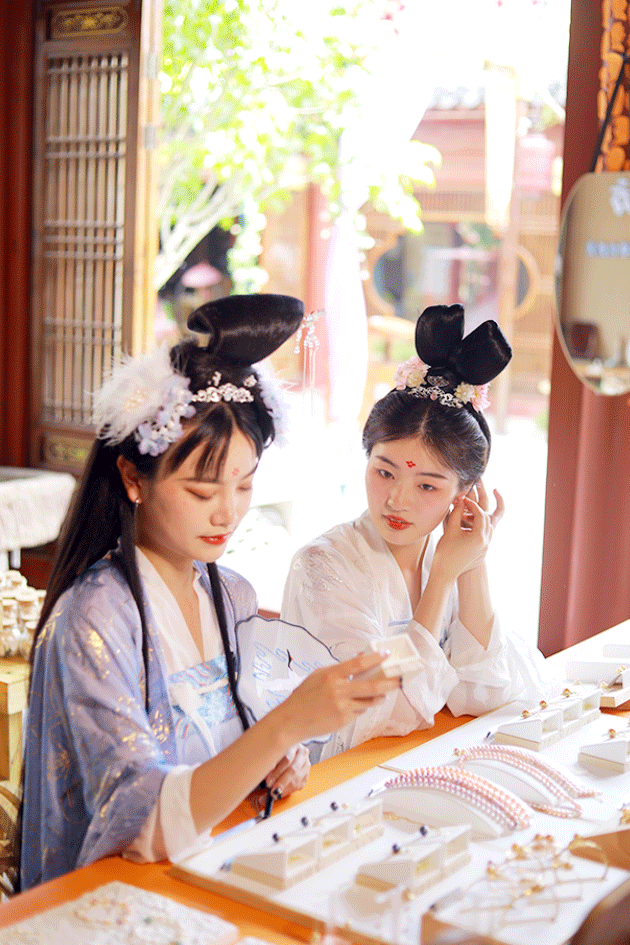 點妝、簪花、梳髻、搖扇……在換裝館玩味一把古代女生的溫婉日常,靜享漢服美學。