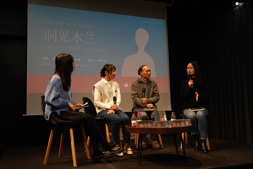 11月13日,《木蘭結婚》作者胡卉與復旦大學中文系教授梁永安,以及復旦大學中文系副教授張怡微齊聚朵雲書院,就「洞見木蘭——非虛構寫作中的女性力量與真實人生」展開對話。