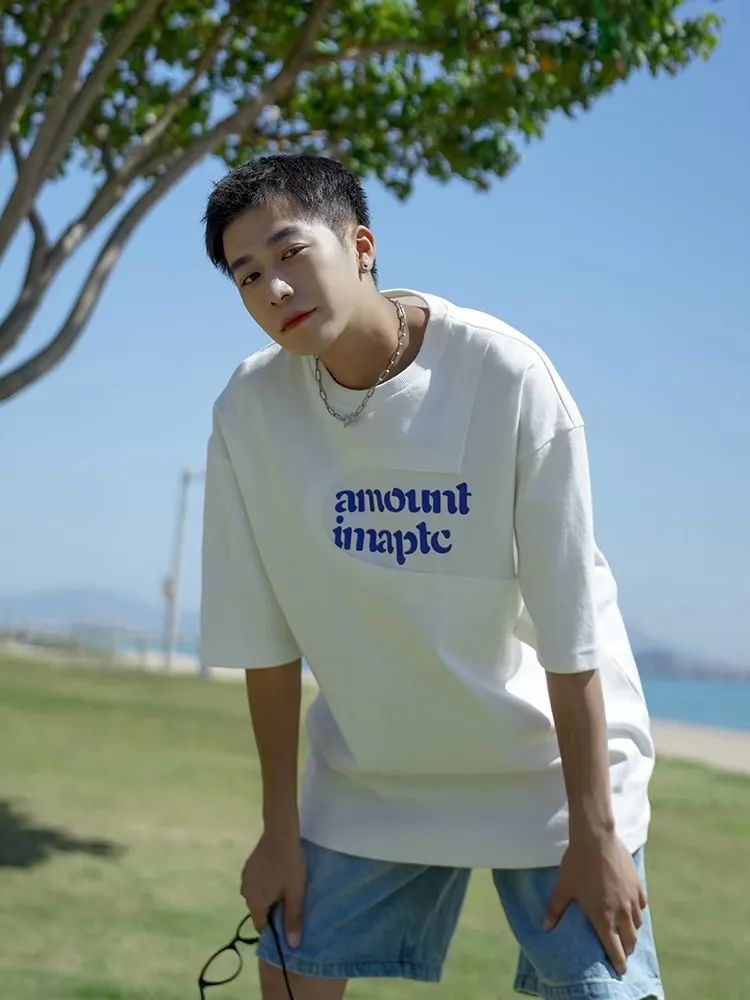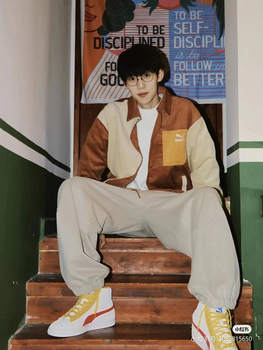 其次還有一些飽和度低的暖色也非常好看,上身顯活力顯白,很容易打造出活力、陽光潮男的氣質。