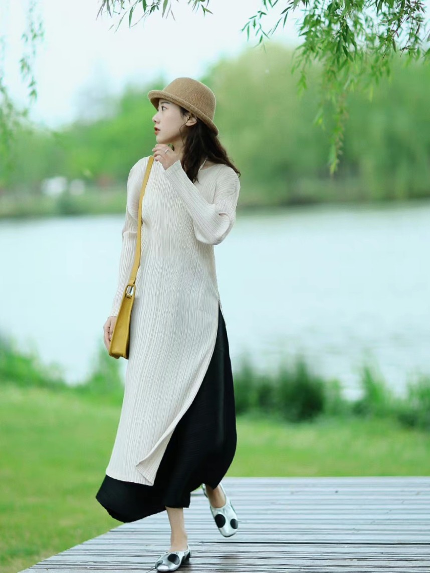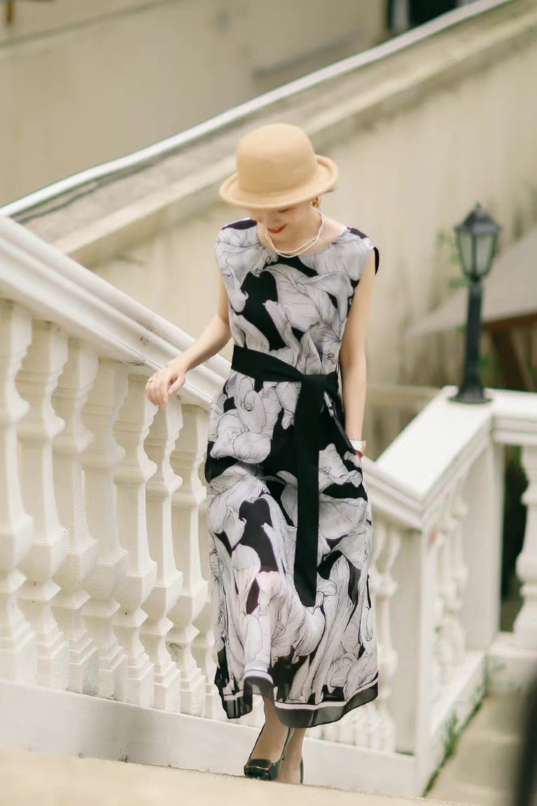 如果選擇的連衣裙版型比較寬鬆,那麼你在穿的時候可以加上腰帶修飾一下,這樣也能營造出好看的身材比例。像這位博主用這些長款裙裝搭配時,也在腰間結合上了細細的腰帶作為點綴,既能拉高腰線,優化身材比例,也能夠凸顯出小蠻腰,時尚又有女生味。微胖身材更是要注重腰線的位置,只是要在腰間留有一定的空間,若是將腰帶勒得太緊,只會導致整個人更顯胖。