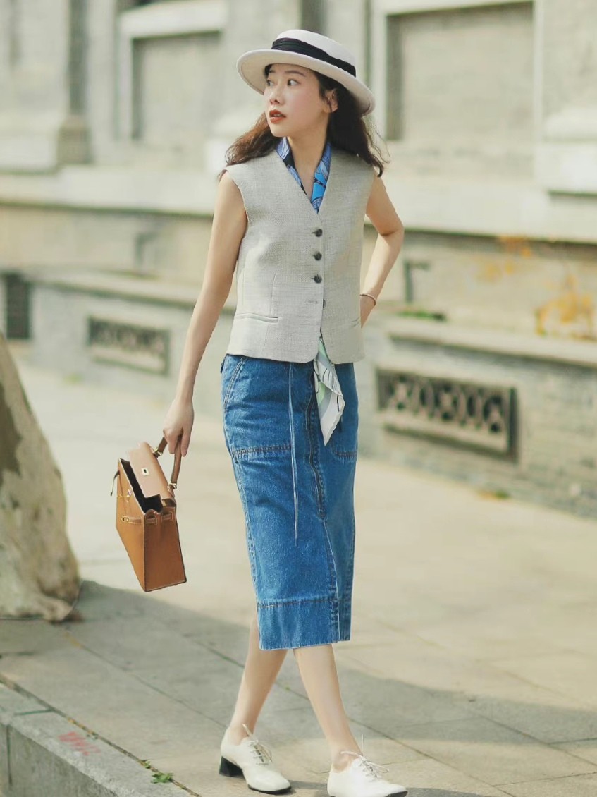 另外,穿半身裙的話,就要關註上衣的搭配,身材不太高挑的女性一定要選擇短上衣,長款上衣搭配起來容易顯得臃腫,也很容易暴露身材的問題,往往短款的上衣搭配上高腰的裙裝更有利於修飾身材。所以在博主這些搭配中,大家會發現她們也經常會用各種短款的T恤或者是襯衫去搭配高腰半身裙。