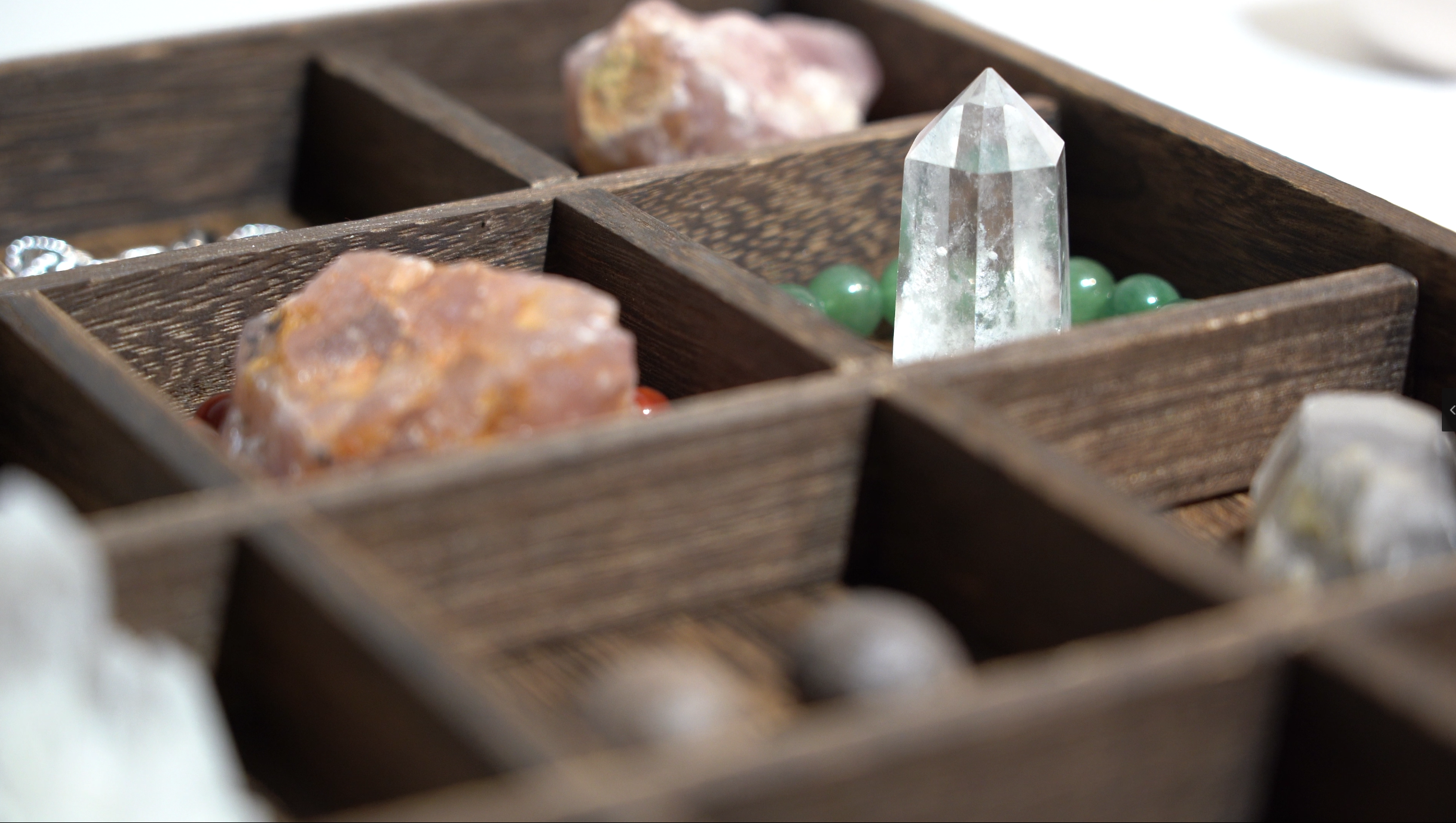木格子裡的水晶石,是進行「能量連接」的工具。