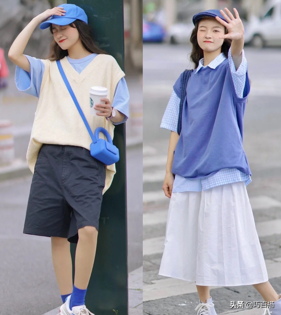 尤其是清爽的藍色系簡直絕了,和白色是清新,和卡其是復古,和黑色是中性,總之,各種時尚風格你都可以擁有。