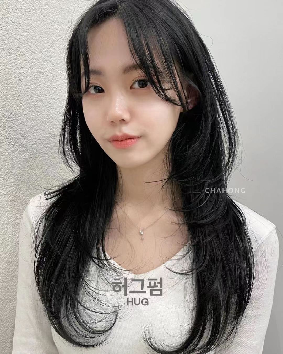 例如這款髮型,底線整齊,但發梢卻輕盈又帶有一些動感,把靜與動完美地結合在一起,讓一款普通的髮型充滿了時尚感。空氣瀏海以及自然的發色,更是給這款髮型註入了滿滿的高級感。