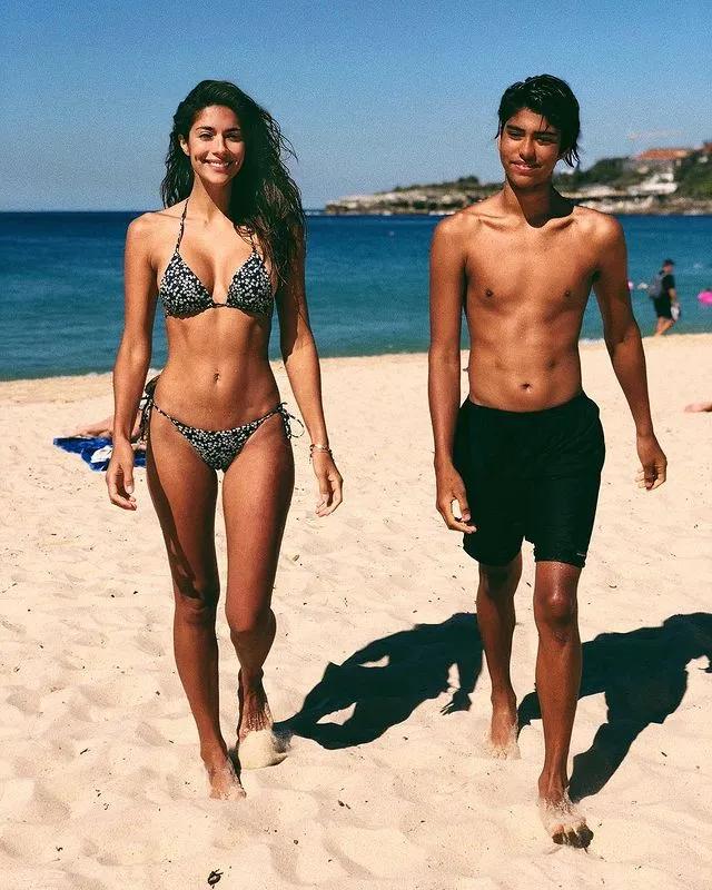 不僅完美繼承了媽媽精緻的五官,還擁有了優越的身材比例。