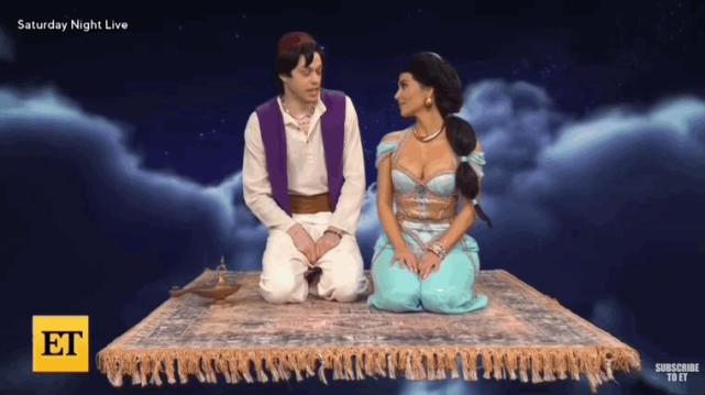 最後一任則就是最前面提到的卡達夏,兩人共進晚餐,同遊遊樂園,樣樣不落下,2021年10月,他們還一起參加了《周六夜現場》,過程中,他們一起出演了短劇《阿拉丁》,並在影片中大膽接吻。
