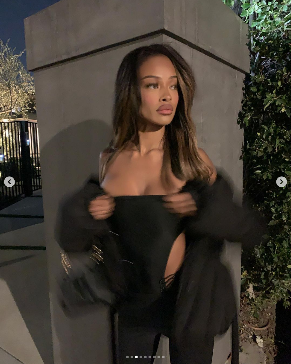 11月7日,也就是侃爺錄完播客第一期,說著「卡戴珊是我妻子」沒兩天,就被拍到和一名22歲模特Vinetria Chubbs一同約會,兩人還一同現身球場觀看比賽。