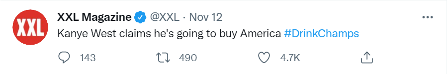 11月12日,就在卡戴珊參加友人同性婚禮的當天,侃爺參與錄制的播客節目的第二期緊跟播出。